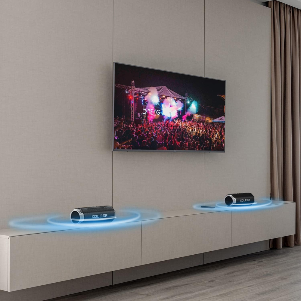 For immersive sound, the built-in TWS Dual Pairing allows two KOLEER speakers to connect, creating 360° surround sound. This setup provides a cinematic experience with deeper bass and wider coverage.